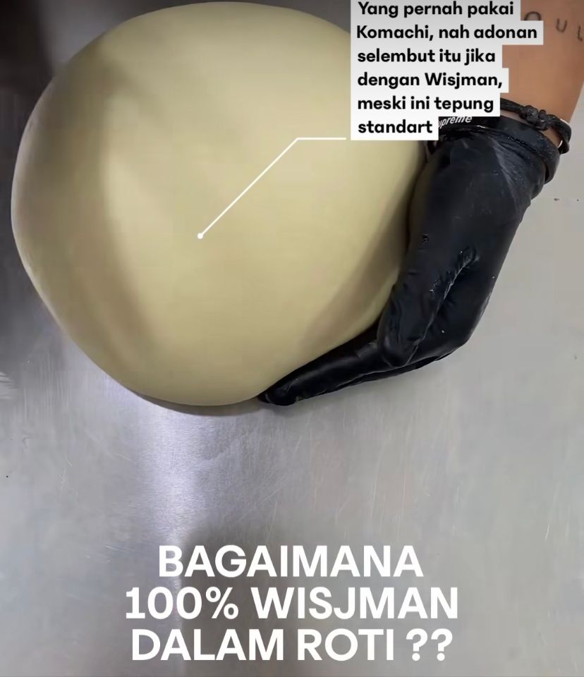 – menggunakan wisjman dengan kadar lemak yang rata-rata sama dengan brand mentega lain tapi bisa jadi beda di kualitas… hasil adonan roti lembut bagaikan menyentuh “adonan full komachi” padahal di video tanpa telur tanpa susu bubuk” dengan hidrasi rendah tapi adonan se elastis dan selembut itu…