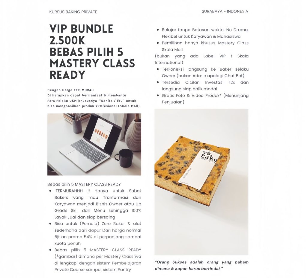 – Bebas pilih 12 Mastery Class (/gambar) di mana per Mastery Classnya di lengkapi dengan sistem Pembelajaran Private Course sampai sistem Pantry