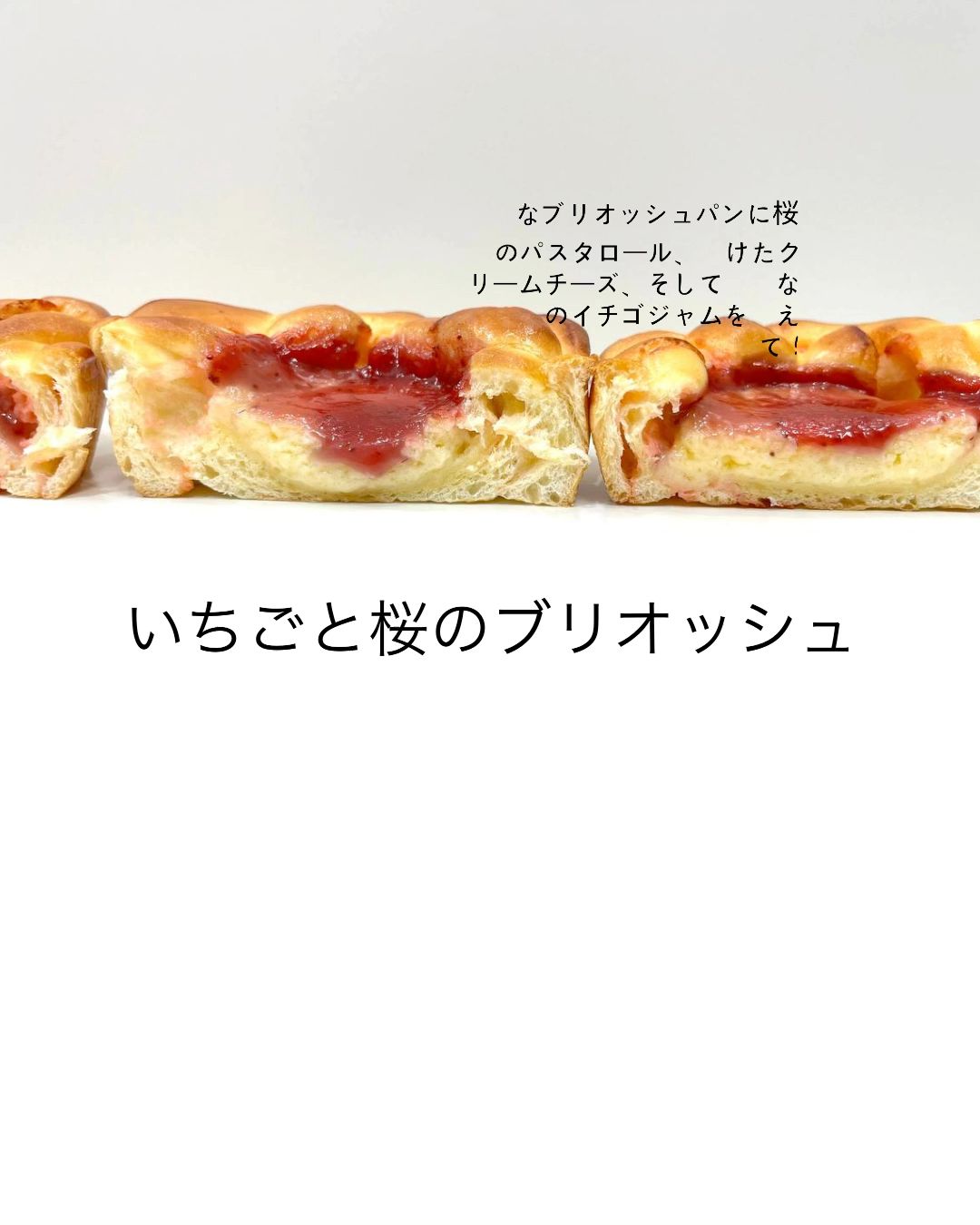 – いちごと桜のブリオッシュ (Ichigo to Sakura no Buriosshu) Roti Brioche elegan dengan gulungan pasta sakura, melted cream cheese, dan kesegaran selai stroberi asli !