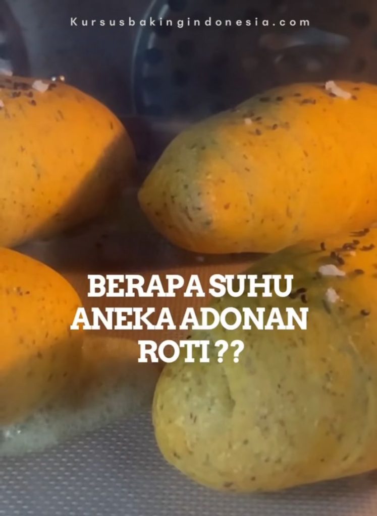 ‼ SUHU BAKING (PEMANGGANGAN) ; suhu panggang akan bervariasi tergantung jenis rotinya, tergantung juga proses dan metodenya. Namun untuk roti umum seperti roti manis dkk pakai suhu 170-180 derajad, sementara untuk adonan roti yang lebih elastis bisa menggunakan patokan suhu 180-210 derajad, untuk roti tawar bisa di kisaran 190-200 derajad. Dan ini juga menentukan dari skala adonan yang masuk, jenis, bahan sampai warna loyang yang di pakai.