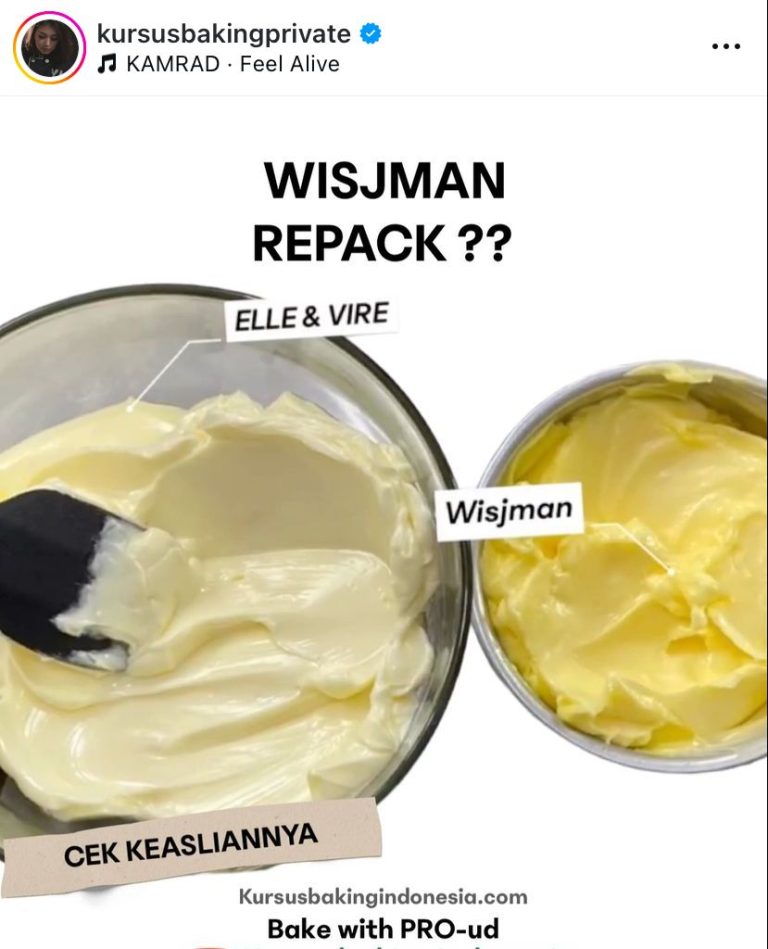 Nah itu contoh diatas bisa di jdikan patokan karena asli dari kemasan pabrikan. Yang kanan wijsman kaleng 2kg dan kiri Elle Vire 2kg mereka sama-sama butter atau mentega ✌🏻
